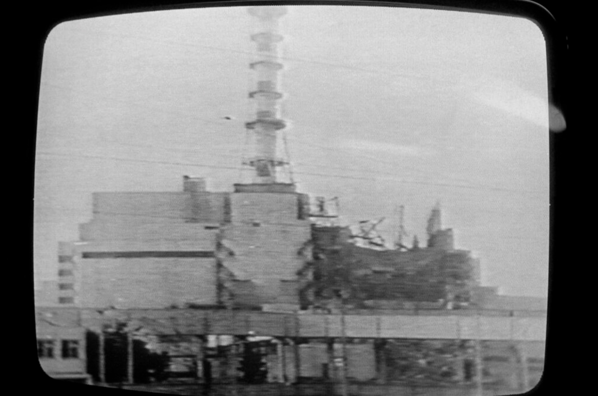 Soviet television showed, on April 30, 1986, this picture of the Chernobyl plant on which a half-destroyed building could be seen, but commentary said there had been "no destruction, nor gigentic fires nor thousands of casualties". Ukraine will on April 30, 2026 mark the 40th anniversary of the Chernobyl accident, the worst civilian nuclear disaster in history. The risks of new radioactive releases still remain today, as the site is threatened by Russian strikes after it invaded the neighbour four years ago. (Photo by AFP)