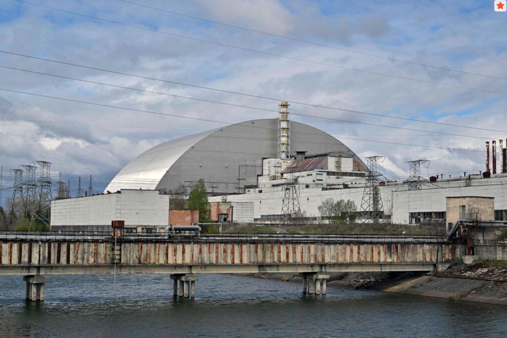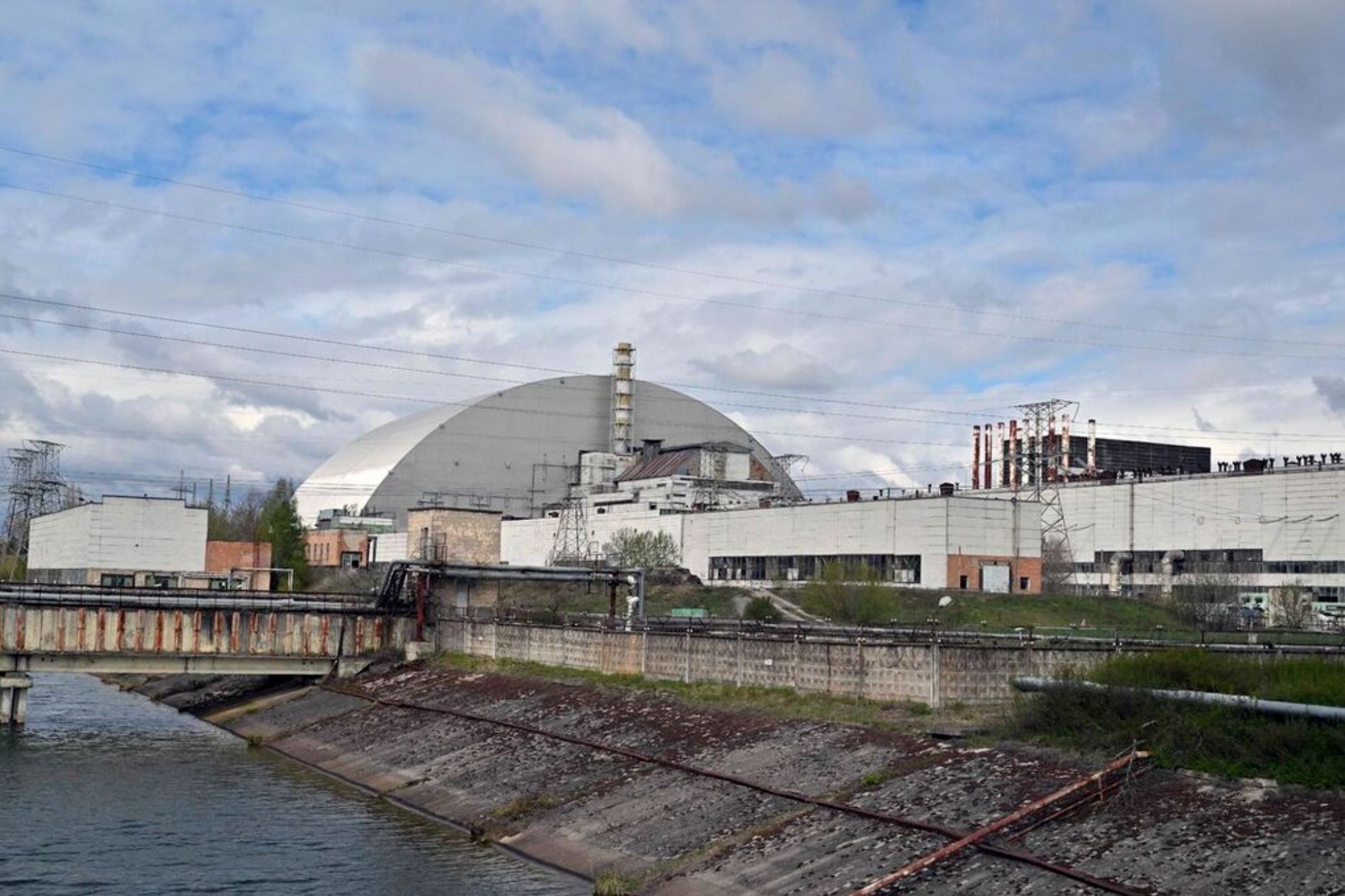 This photograph shows New Safe Confinement (NSC), covering the destroyed fourth reactor at the Chernobyl Nuclear Power Plant on April 23, 2026. Ukraine will on April 26, 2026 mark the 40th anniversary of the Chernobyl accident, the worst civilian nuclear disaster in history. The risks of new radioactive releases still remain today, as the site is threatened by Russian strikes after it invaded the neighbour four years ago. (Photo by Sergei SUPINSKY / AFP)