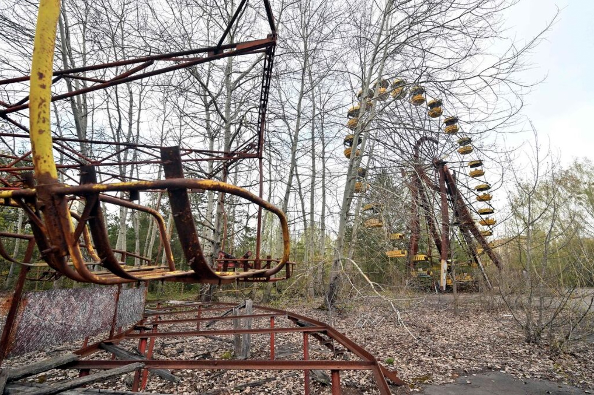 This photograph shows Ferris wheel in the ghost city of Pripyat near Chernobyl Nuclear Power Plant on April 23, 2026. Ukraine will on April 30, 2026 mark the 40th anniversary of the Chernobyl accident, the worst civilian nuclear disaster in history. The risks of new radioactive releases still remain today, as the site is threatened by Russian strikes after it invaded the neighbour four years ago. (Photo by Sergei SUPINSKY / AFP)