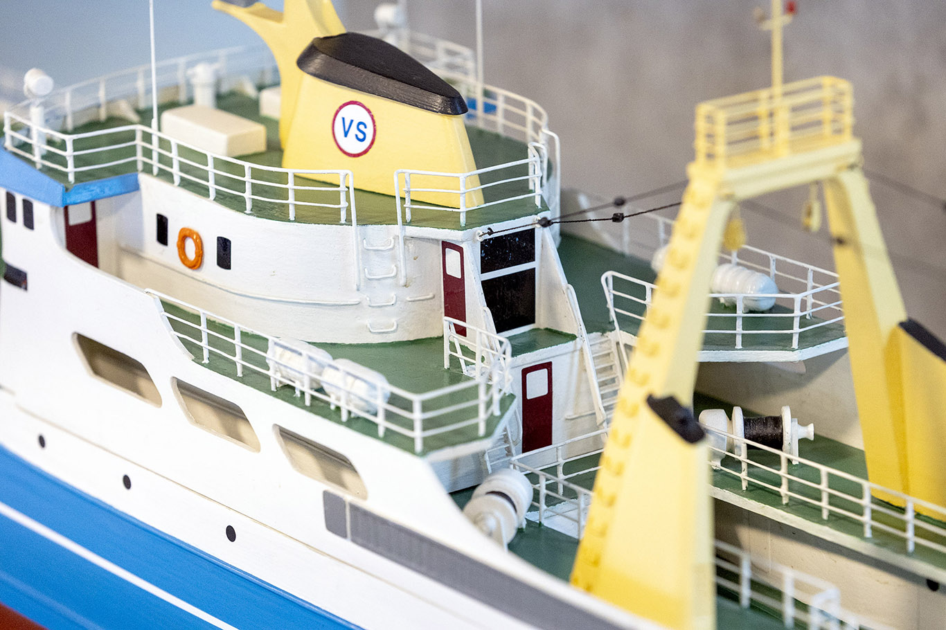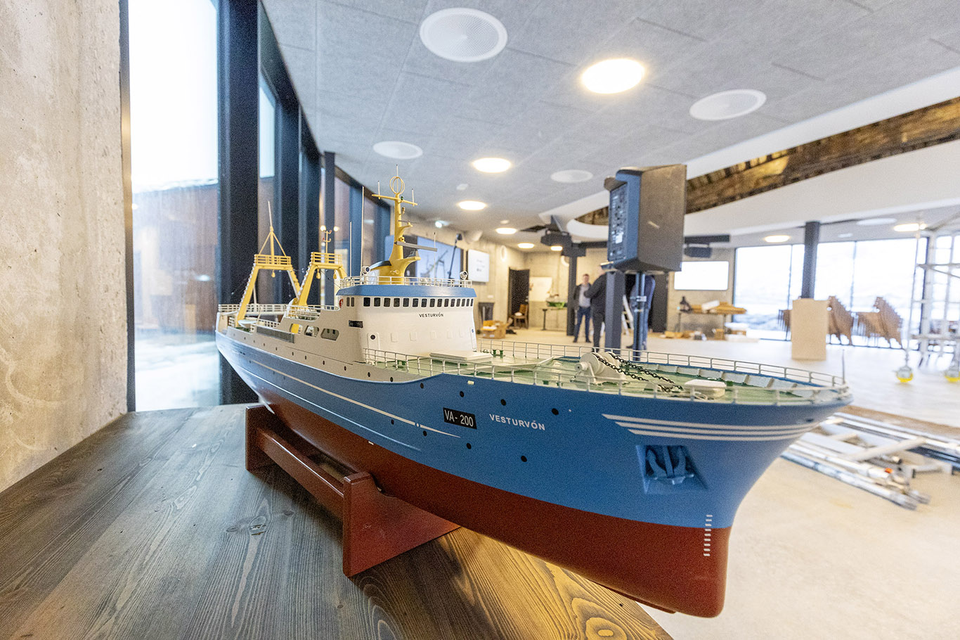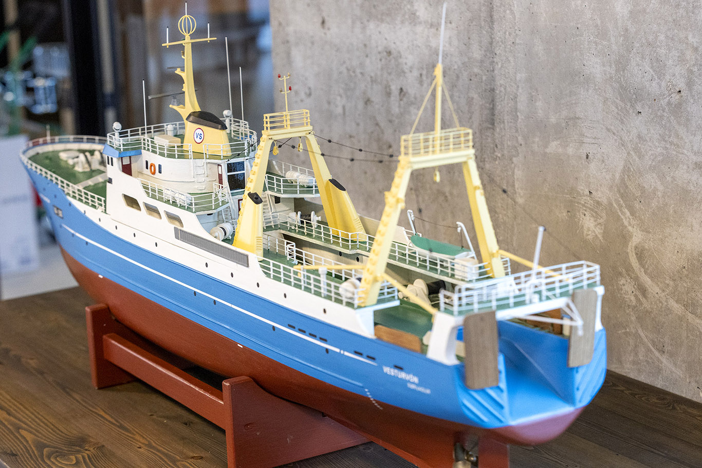 Tað hevur týdning at bygningurin er vakur, men tað eru lutirnir sum vera vístir fram, sum skulu vera í miðdeplinum. Framsýningin er skipað við modellbátum, sum standa framvið glasvegginum.