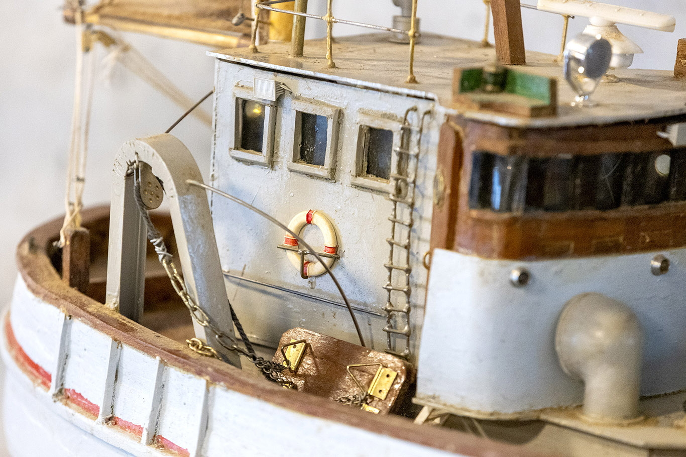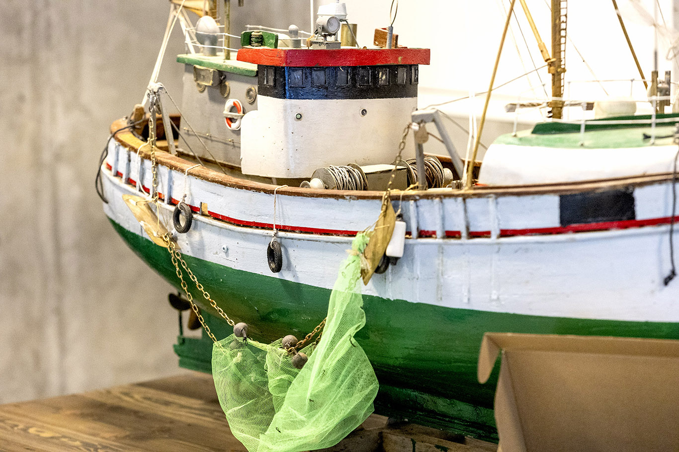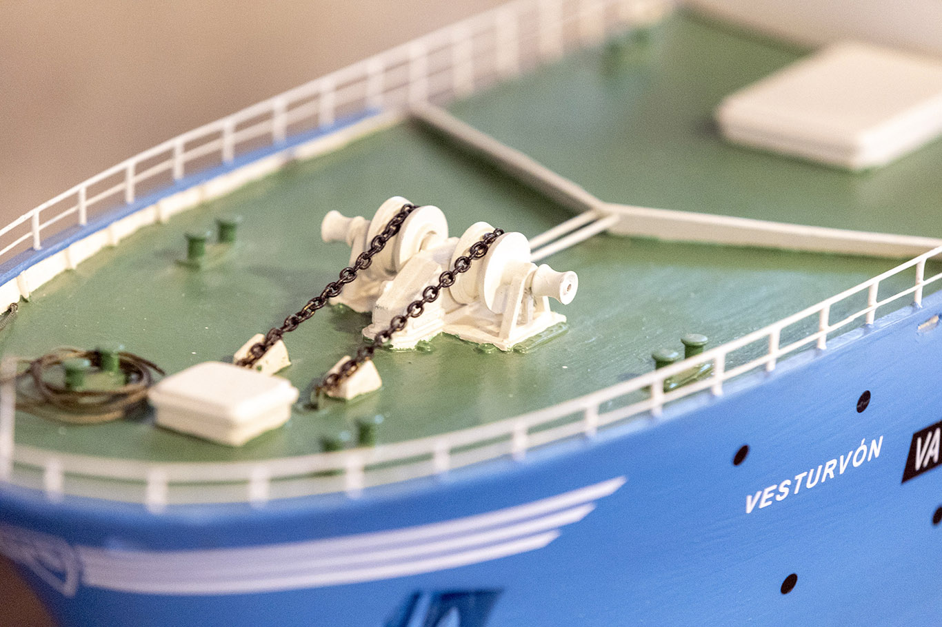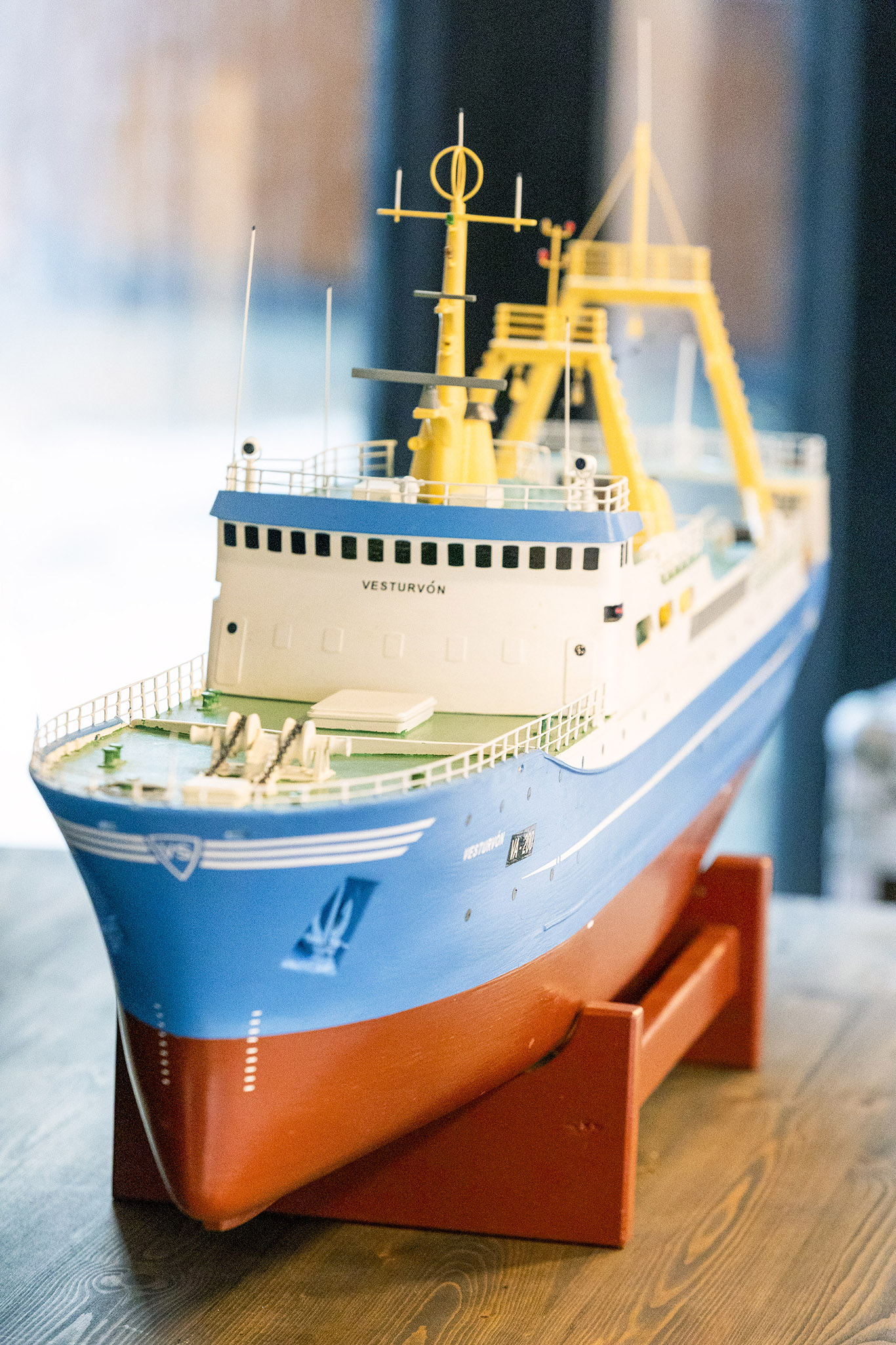 Tað hevur týdning at bygningurin er vakur, men tað eru lutirnir sum vera vístir fram, sum skulu vera í miðdeplinum. Framsýningin er skipað við modellbátum, sum standa framvið glasvegginum.