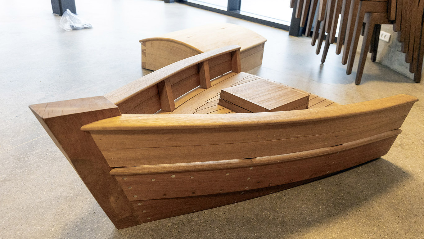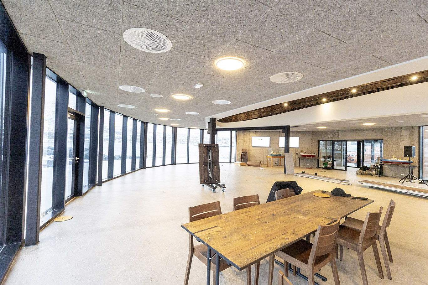 Tað sermerkta við bygninginum er at báturin Marna FD193 er partur av tekjuni, og restin av rúminum er eitt framhald av runda bátinum. Tí er bygningurin ein avlangur ringur, ein ellipsa, og litirnir eru heitir; brúnt, svart og grátt.