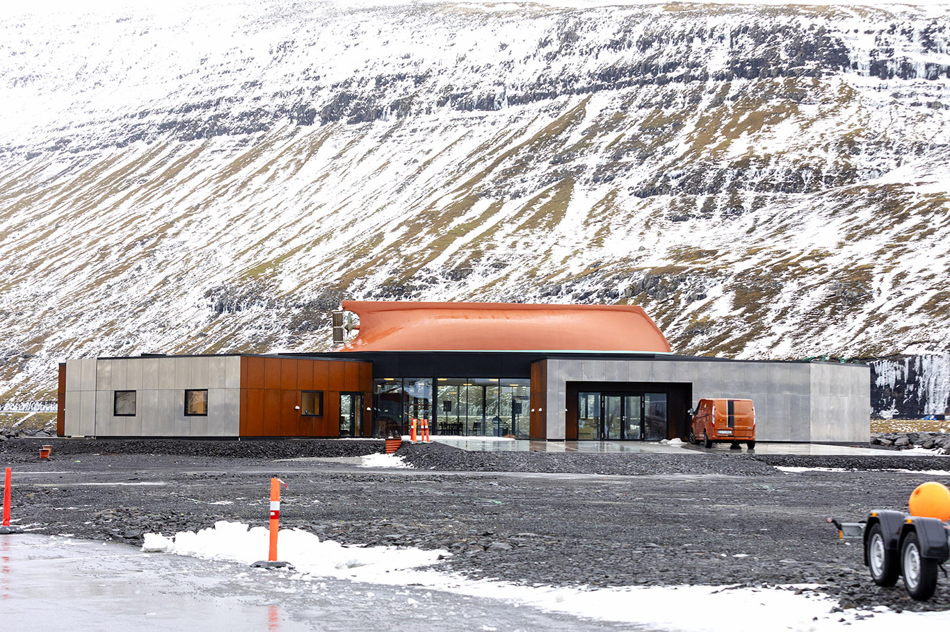 – Hugsanin við klædninginum er at tað sum er heitt innbjóðandi, kemur út frá bygninginum, og tað kalda er úti.