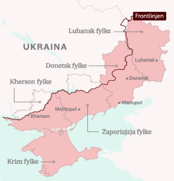 Í friðarætlanini hjá USA verða Krim, Luhansk og Donetsk viðurkend sum russisk, og hermótini í Kherson og Zaporizjzja verða "fryst" eftir hermótinum. Ætlanin merkir, at Ukraina skal lata russum munandi størri landaøkir í Donetsk, enn russar higartil hava megnað at tikið
