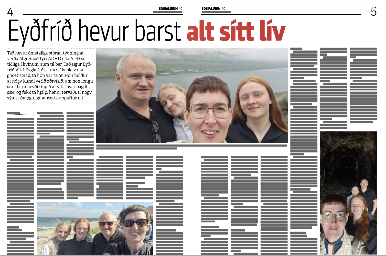 - Tað var ein kvinna, sum las til lærara, og í greinini greiddi hon frá, hvussu ræðuliga stríggið alt var. Eg kendi meg aftur í øllum og var beinanvegin sannførd um, at eg feilti tað sama sum kvinnan í greinini, og hon var diagnostiserað við ADD – altso ADHD uttan H’ið. Síðan havi eg funnið út av, at talan helst er um sama brek, men hyperaktiviteturin, sum er so sjónligur hjá einum við ADHD, er bara í staðin innaní hjá einum við ADD, greiðir Eyðfríð frá.