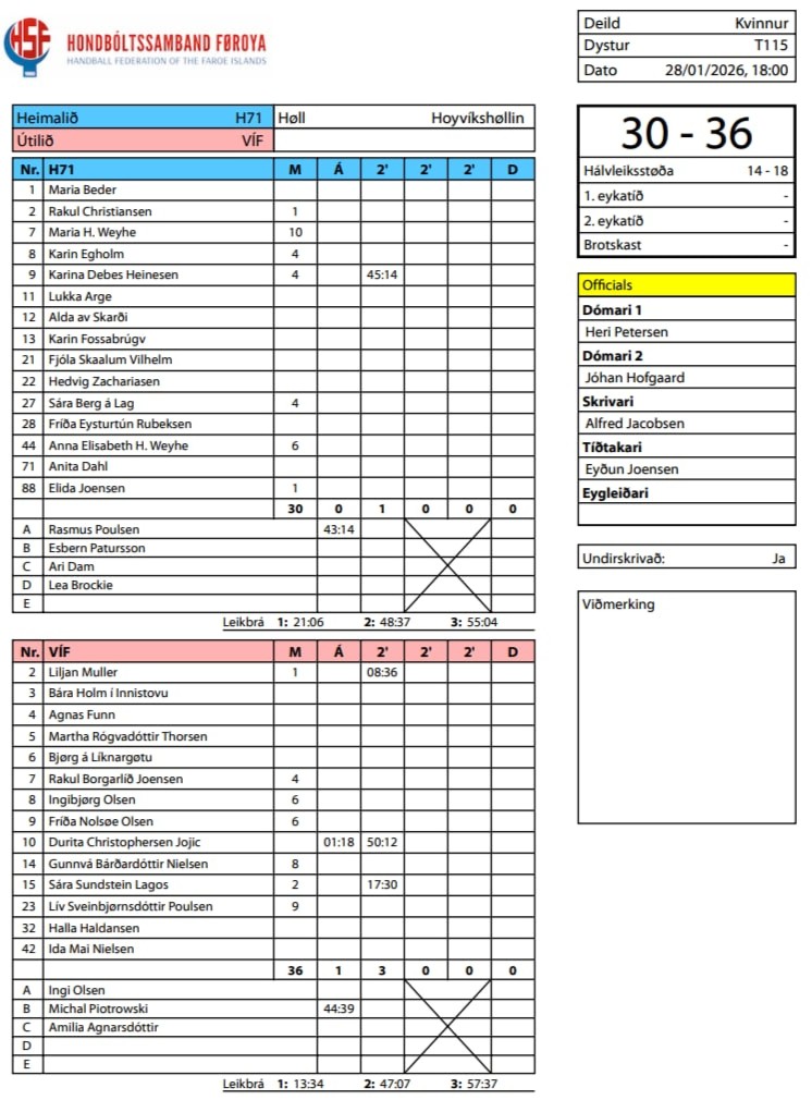 HER ber til at síggja dómaraseðilin frá HSF frá dystinum millum H71 og VÍF: