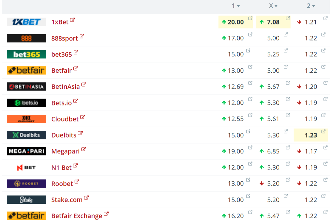 Oddsini upp á javnleik liggja millum 5,00 og 7,08.
