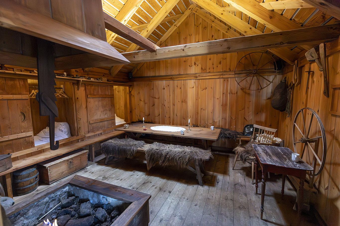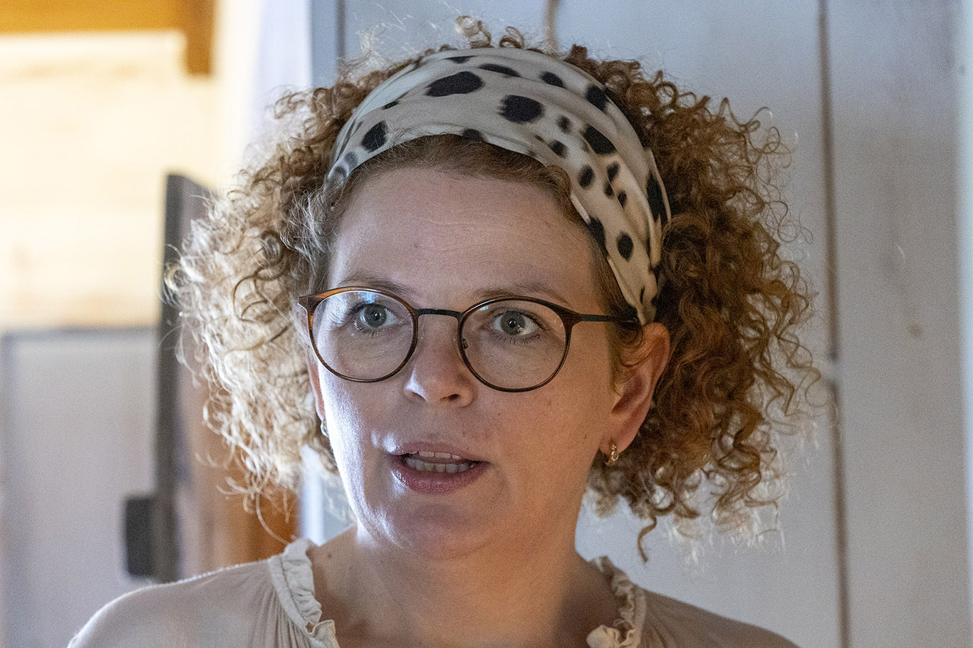 - Hon hevur sitið her og lært nógvar kvinnur at veva. Vit hava innrættað hetta rúmið meiri "kvinnuligt", tí hon er frúan í húsinum, og hevur kanska sitið her og hugnað sær við vinkonunum, meðan menninir hava sitið úti í roykstovuni og bundið.