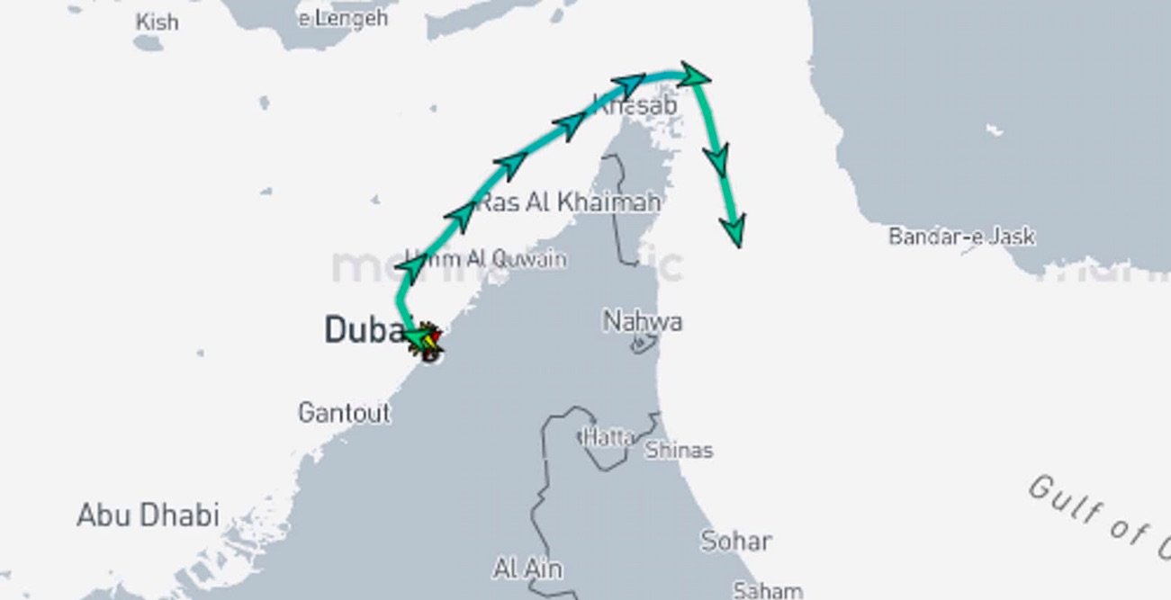 Eitt ferðamannaskið av Malta fór í dag úr Dubai við kós móti Oman.