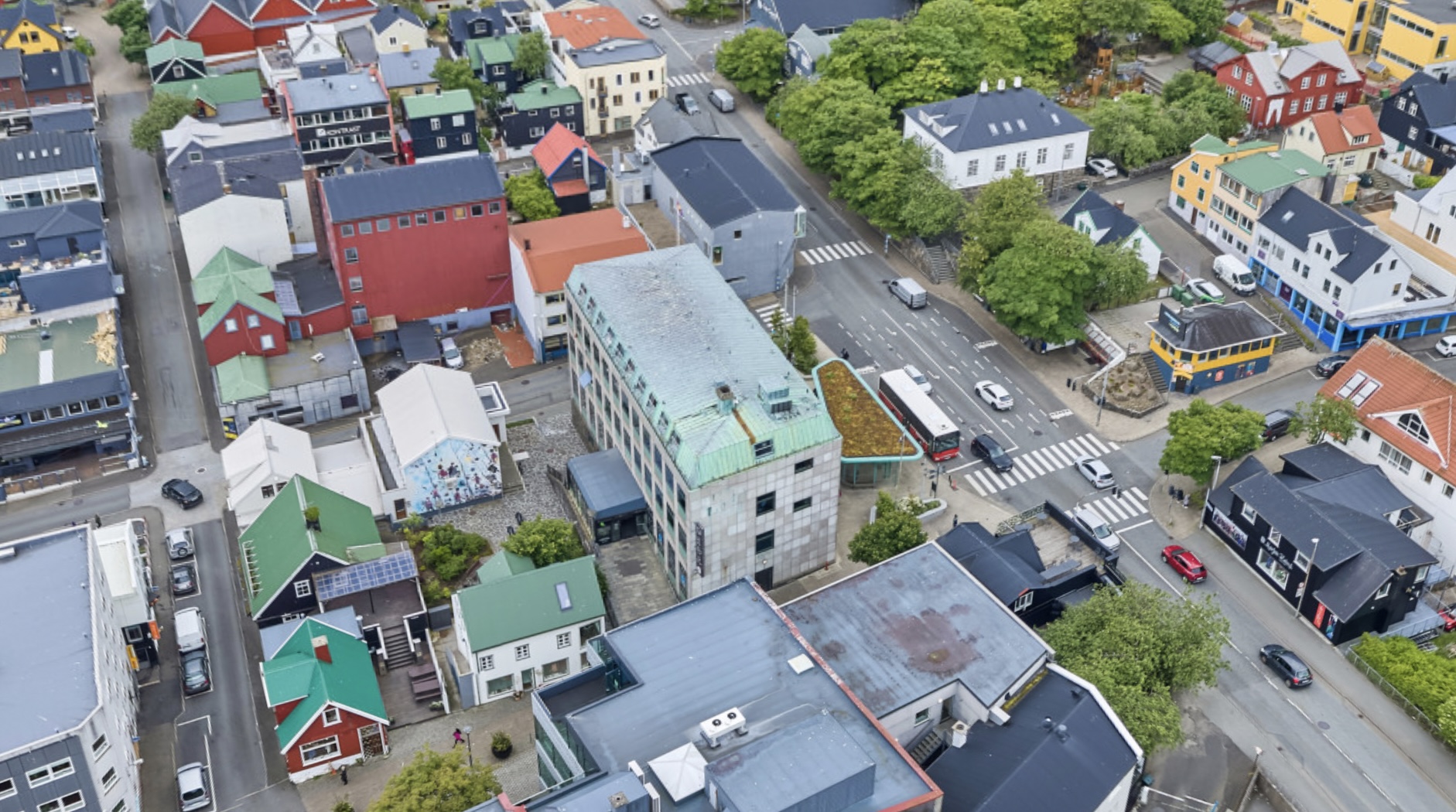 Upprunaligi bygningurin stóð liðugur í 1958, tá P/F Føroya Banki flutti inn. Bygningurin hevur øll árini, verið nýttur sum banka- og skrivstovubygningur.