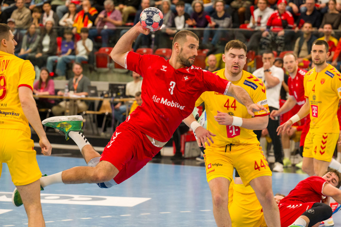 Á heimavølli í Wintherthur leikti Sveis javnt 29-29 móti Norðurmakedonia. Í fyrra hálvleiki gekk væl hjá Sveis, ið var á odda 18-13 í steðginum. Í seinna hálvleiki vóru tað norðurmakedonar, ið vóru omaná.