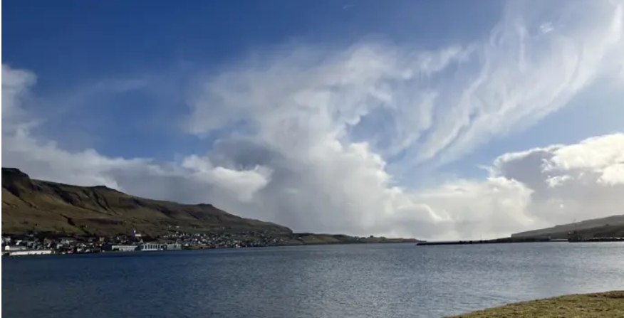 Seinastu vikuna í mars skifti hann millum kaldan útnyrðing við kavaavfalli og lýggjari luft millum útsynning og landsynning. Tað kavaði fleiri dagar, men ikki tað nógva, og hann lá ikki leingi. Hendan morgunin eitt sindur eftir sólarris var frískur vindur upp í strúk av útsynningi suðuri, og skýggj lógu spjødd í øllum trimum hæddunum.