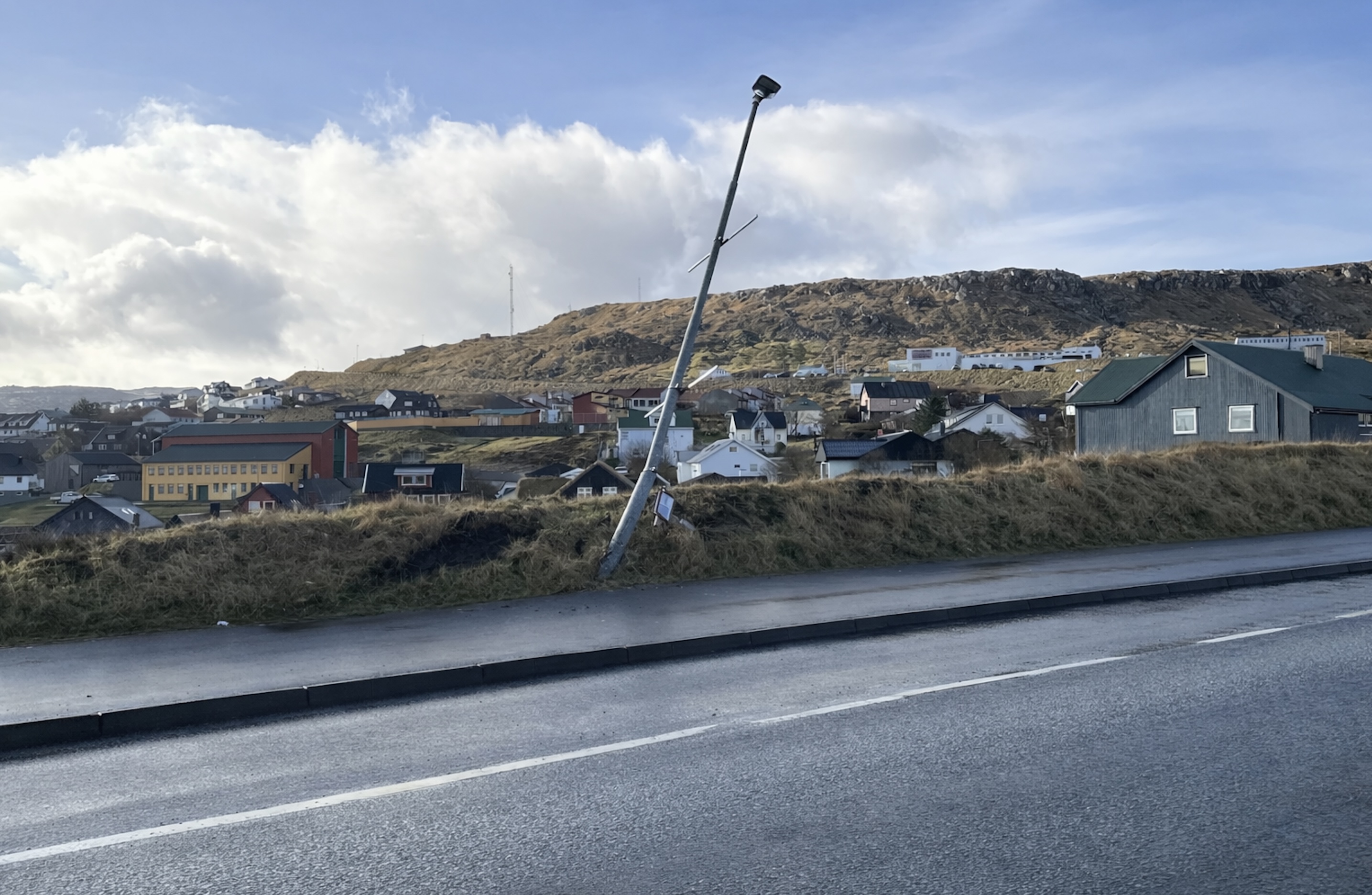 Ein bilførari, sum koyrdi vestur eftir Norðara Ringvegi í Havn leygarnáttina misti tamarhaldið á bilinum og fór yvir í skeiva síðu, upp um gongubreytina og rendi á ein lyktapela. Vaktleiðarin á politistøðini sigur, at eingin fókaskaði var, og at bilførarin var ikki ávirkaður.