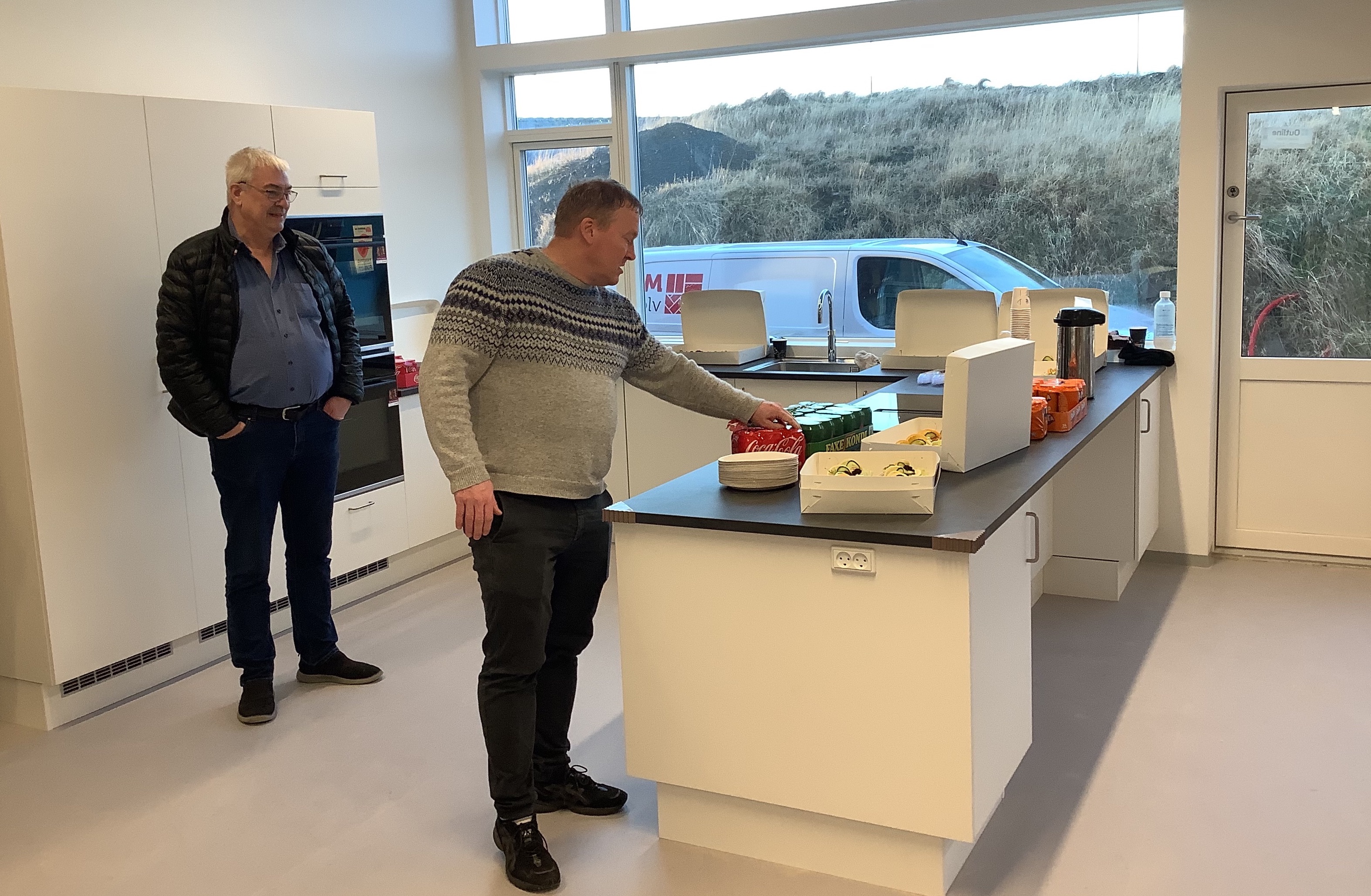 Við løtuna á yvirtøkudegnum vóru umboð fyri arbeiðstakaran og undirveitarar, og her vóru eisini umboð fyri kommununa.