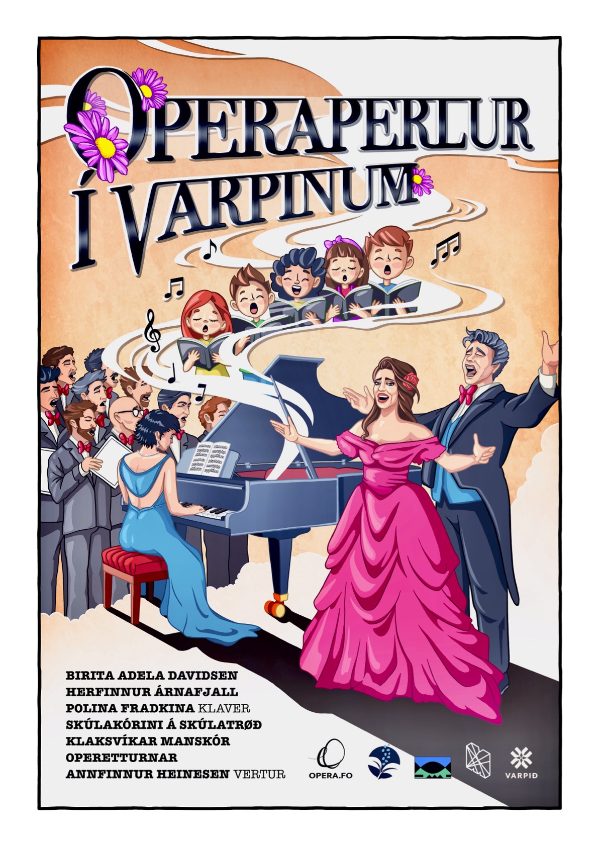 Solistarnir verða Birita Adela Davidsen frá Opera.fo og Herfinnur Árnafjall, sum vit m.a. kenna í leiklutinum sum Papageno, úr “Papageno og Gandadrykkurin” sum varð framført í Varpinum í 2024.