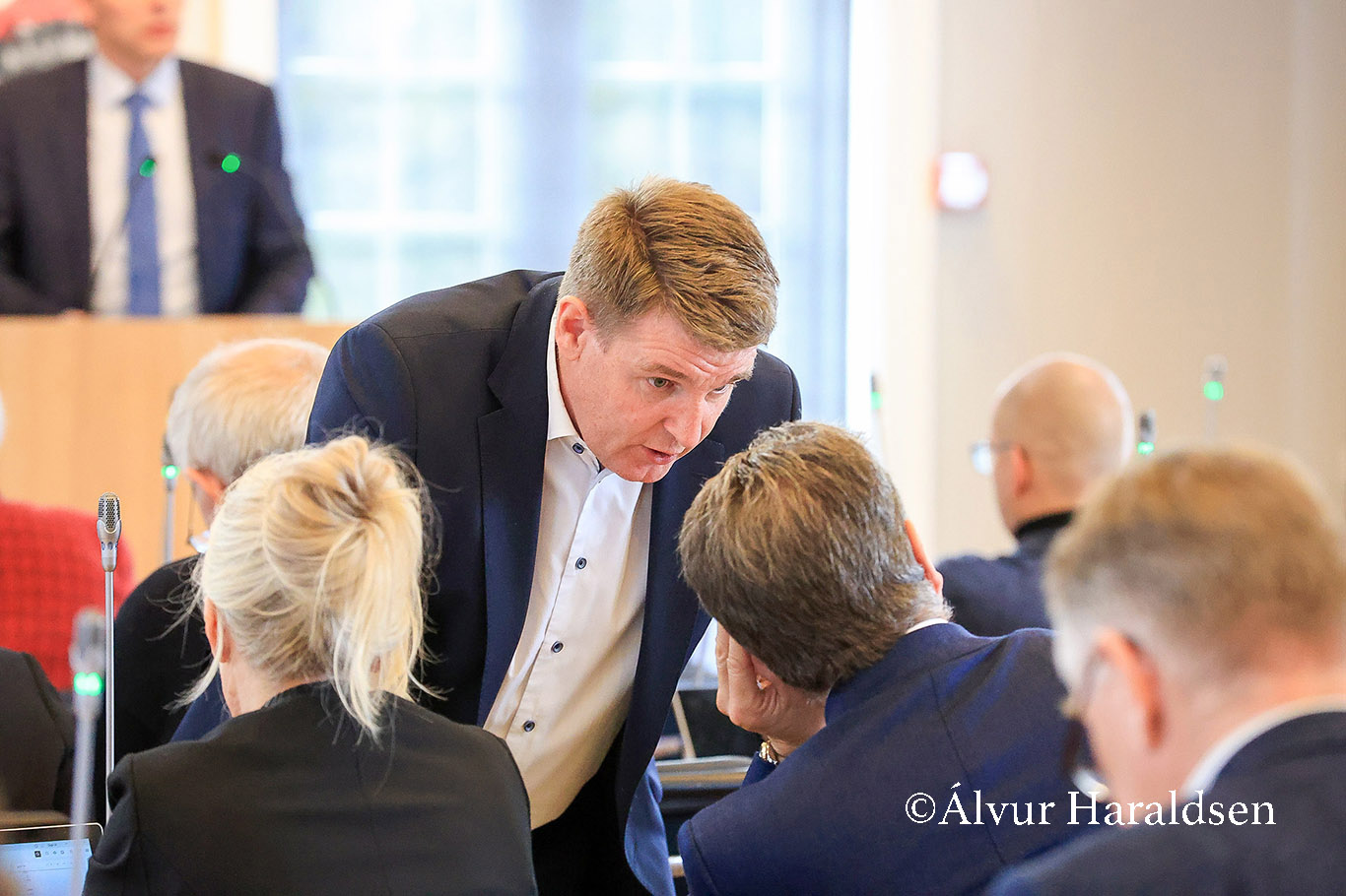 Sum eg havi sagt fleiri ferðir áður, so er hetta eitt arbeiði, sum væntandi kemur at strekkja seg longur enn verandi valskeið, og tí er tað, sum hevur størstan týdning, at arbeiðið verður gjørt rætt og væl, og í so breiðari semju sum møguligt. Bæði innanhýsis í Føroyum, og millum Føroyar og Danmark. Enn er eingin fundur avtalaður millum landsstýrið og donsku stjórnina um hesi viðurskifti, sigur Aksel V. Johannesen, løgmaður, í svari til Bárð á Steig Nielsen.