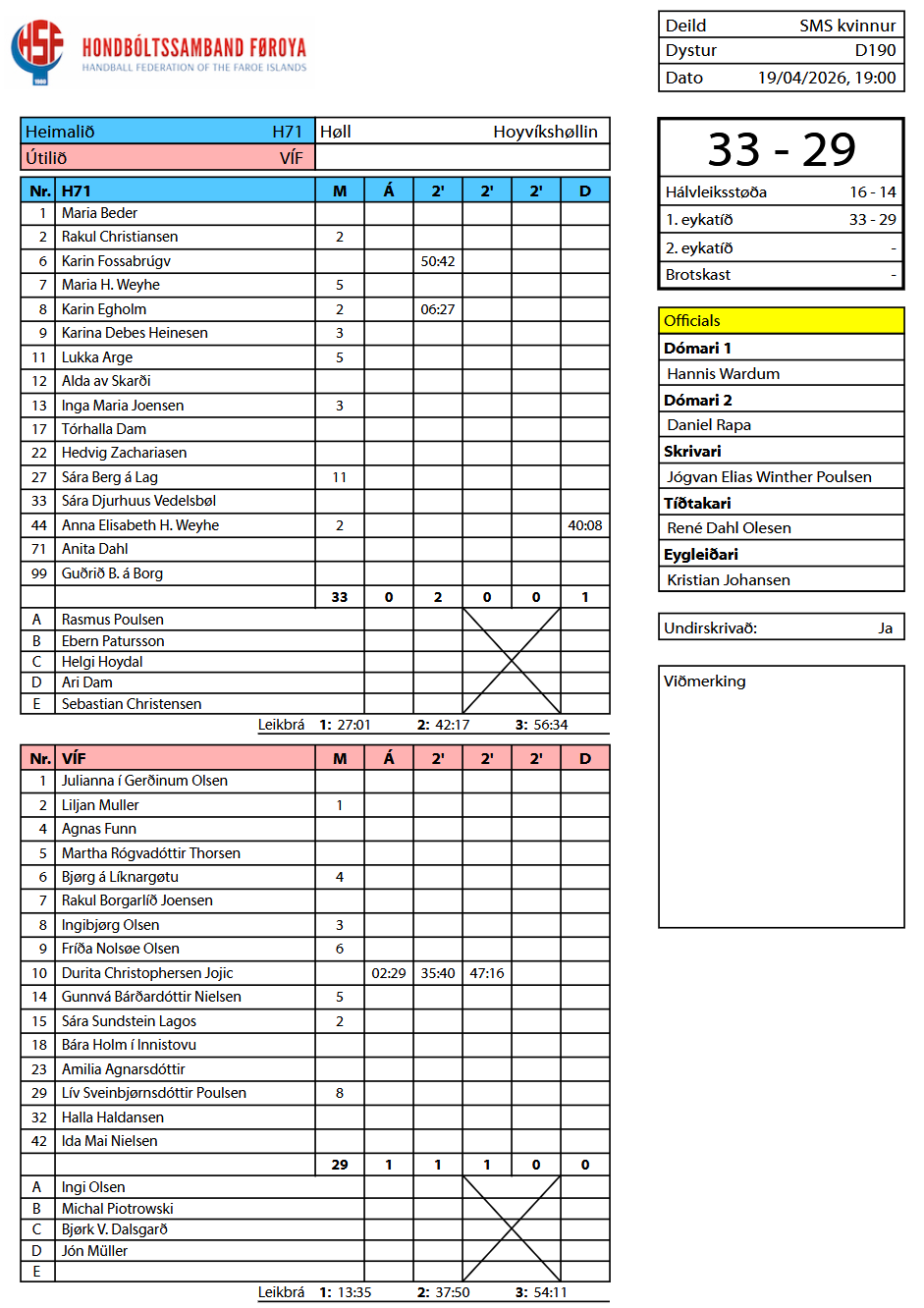 HER ber til frá HSF at síggja dómaraseðilin frá aðru FM-hálvfinaluni: