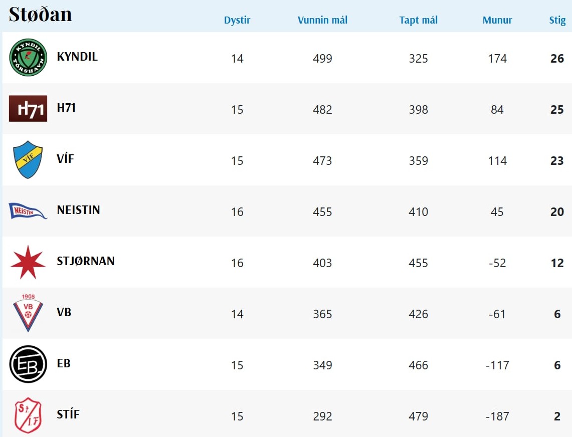 HER ber til frá HSF at síggja dómaraseðlarnir frá dagsins dystum, umframt støðuna í deildini: