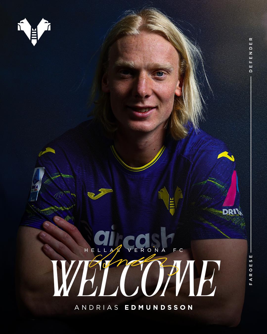 Hellas Verona í bestu italsku deildini hevur júst kunngjørt á sínum sosialu miðlum, at føroyski verjuskansin, Andrias Edmundsson fer at spæla við liðnum komandi árini.