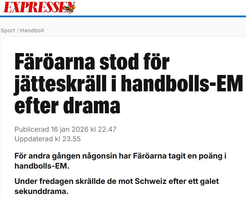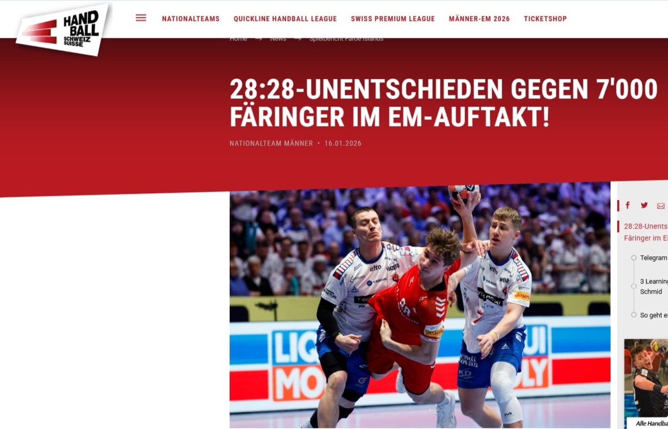 Sveisiska hondbóltssambandið hevur stuttligastu yvirskriftina: "Sveis leikti javnt móti 7.000 føroyingum". Tað avgjørt er eitt stórt kompliment til óføru føroysku fjeppararnar.