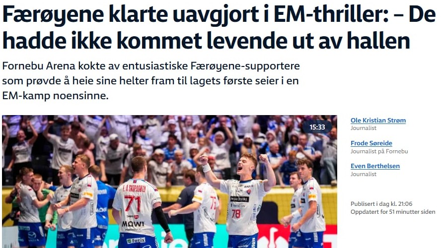 Stóri týski hondbóltsmiðilin, Handball-World nevnir 28-28 javnleikin: "ein øran krimi":