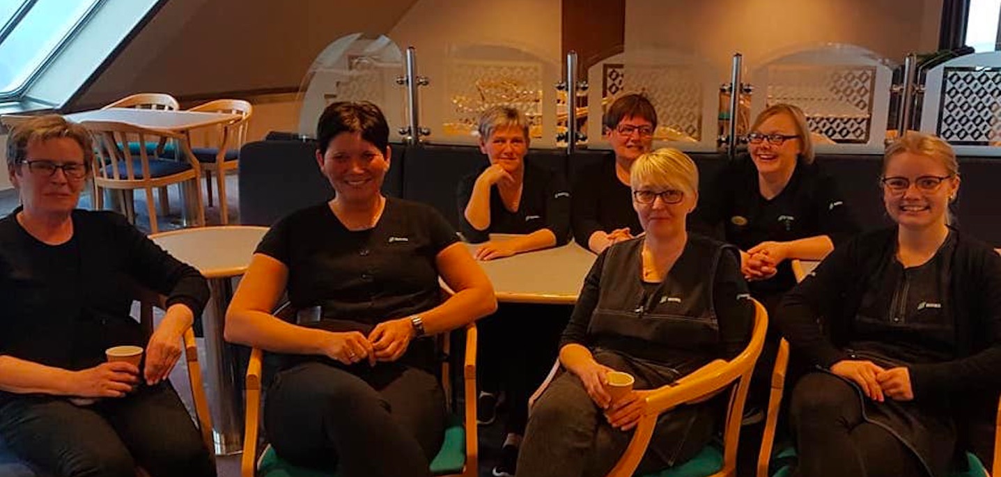 - Vit eru átta umborð í senn, nakrar eru á fullari tíð, og nakrar arbeiða ¾ tíð. Eg arbeiði ¾ tíð, og tað havi eg gjørt øll árini. Men, vit taka eisini vaktir fyri hvørja aðra, um onkur hevur forfall, og eg sigi ongantíð nei, tá heitt verður á meg um at taka eyka arbeiði.