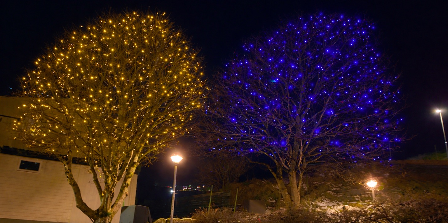 Soleiðis siga tey í Vestmanna kommunu. Her vísa tey eisini á, at til ber at broyta litirnar í smáu perunum á trøunum við einari fjarstýring eftir høvi. Ætlanin, at trøini skulu lýsa í myrku tíðini og annars, tá tiltøk eru í bygdini.