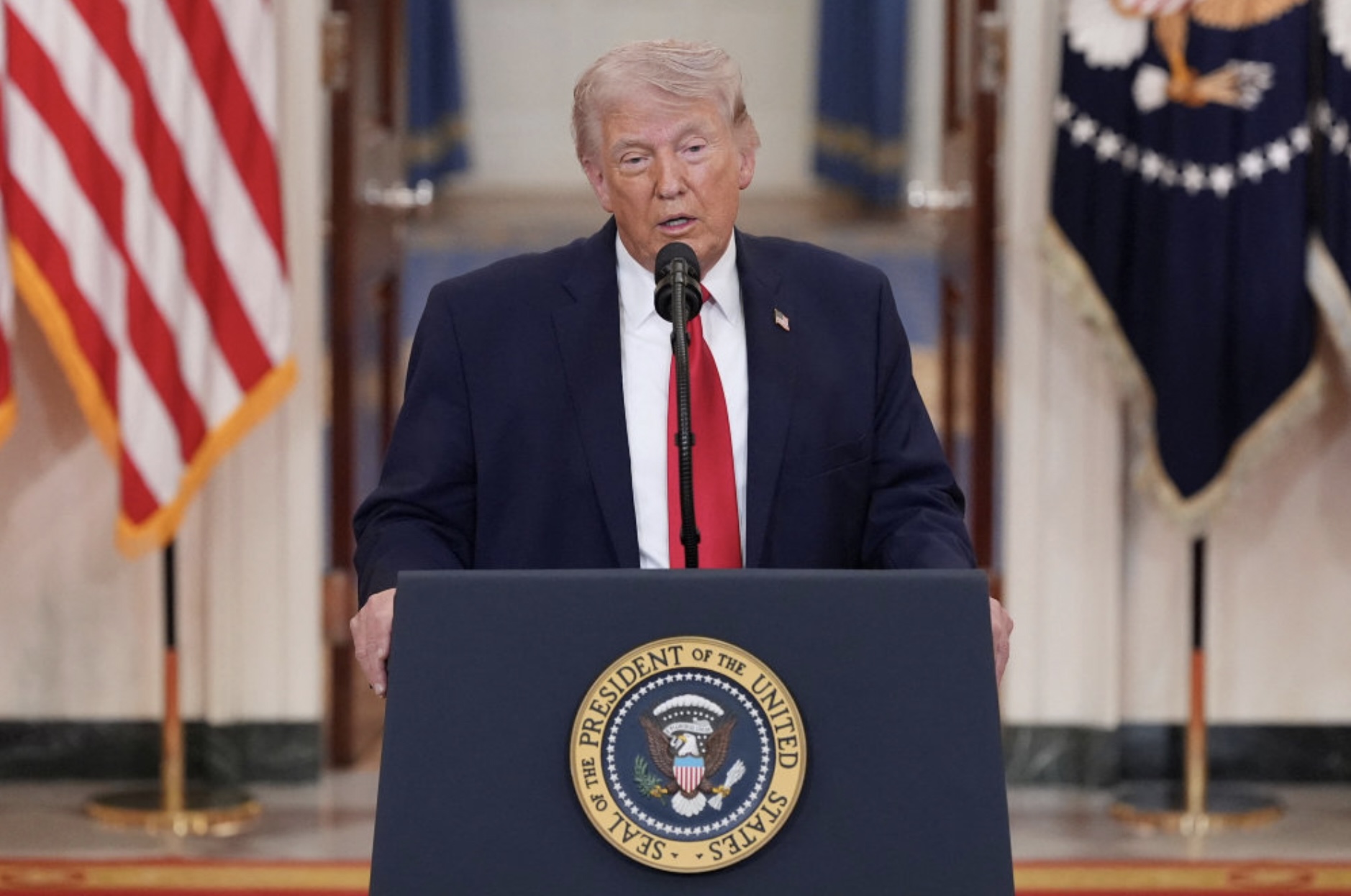 – Eg fegnist um at kunna siga, at sentralu strategisku málini nærkast endanum, sigur Trump.