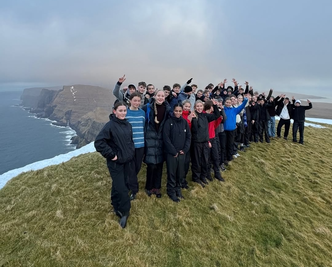 Her eru tey avmyndaði á toppinum á Beinisvørði.