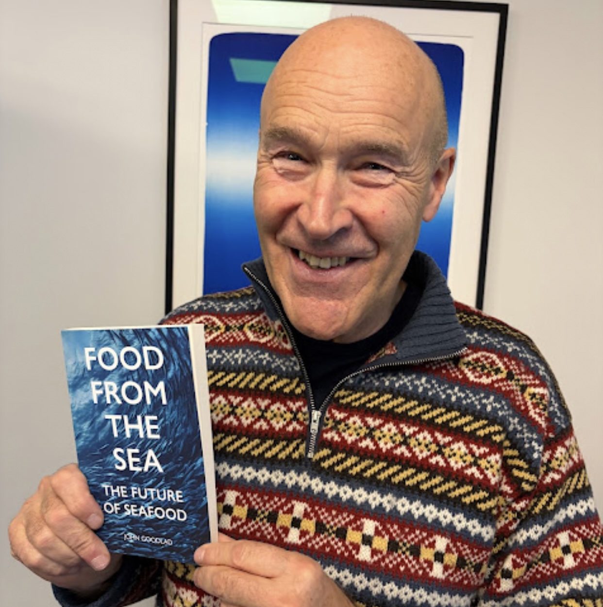 John Goodlad helt fast um, at vilt tú bjarga heimsins svongu munnum í 2050, tá 11 milliardir verða at metta, eigur tú at eta fisk, sum er veiddur á burðardyggan hátt. Fyrsta bókin hjá Goodlad var “The Cod Hunters” í 2018, “The Salt Roads: How Fish Made a Culture” í 2022, “Saltleiðirnar – hvussu fiskur skapti eina mentan”, sum Regin av Steinum týddi og Sprotin gav út í fjør. Nýggjasta bókin er “Food from the Sea: The Future of Seafood”, sum kom í summar. Nú fer hann at arbeiða við samstarvinum millum Hetland og Føroyar, tá mongu hetlandssluppirnar vóru her og fiskaðu. Seinasta hetlandssluppin, sum fiskaði undir Føroyum, var William Martin. Tað var í 1908.