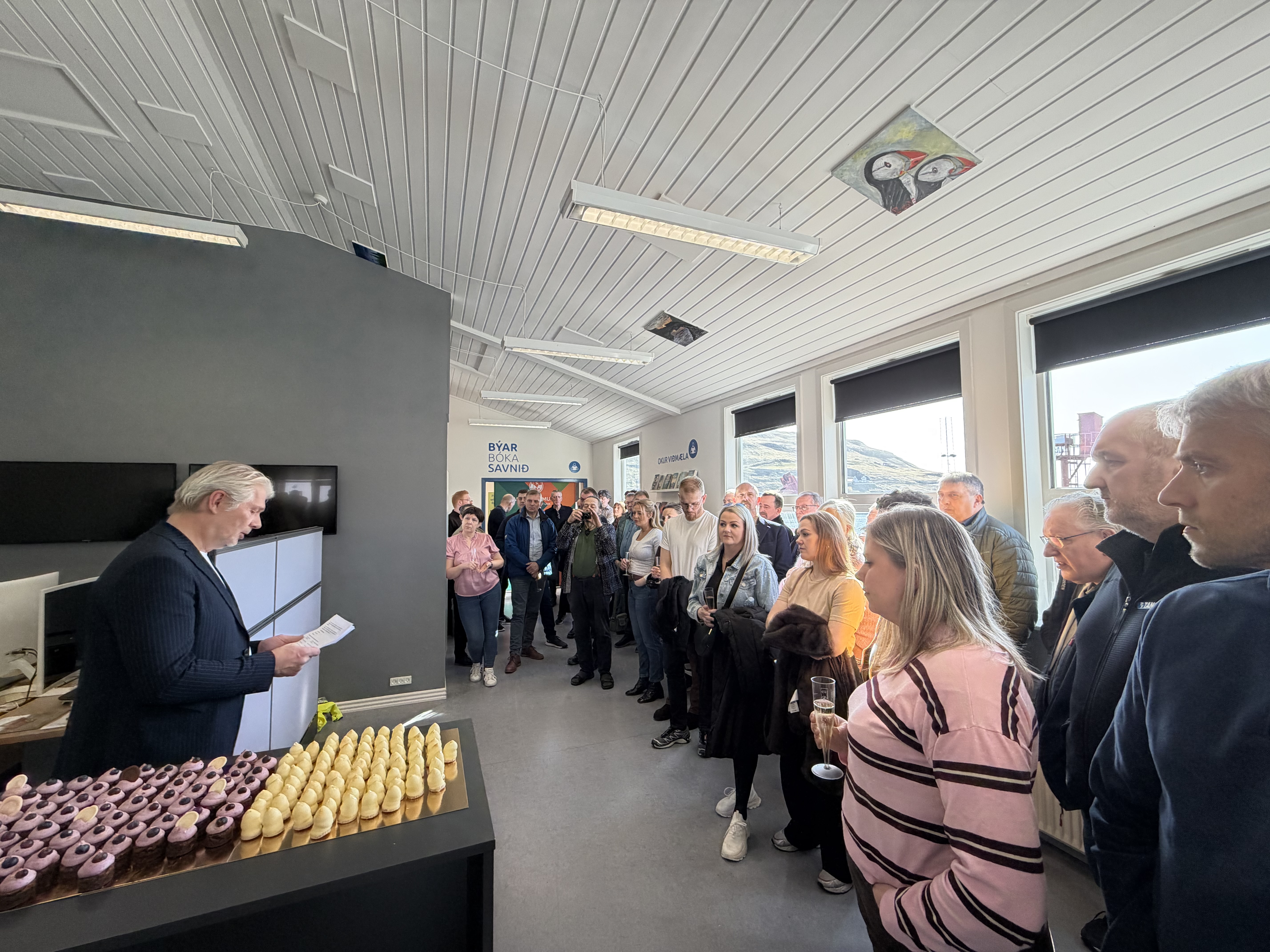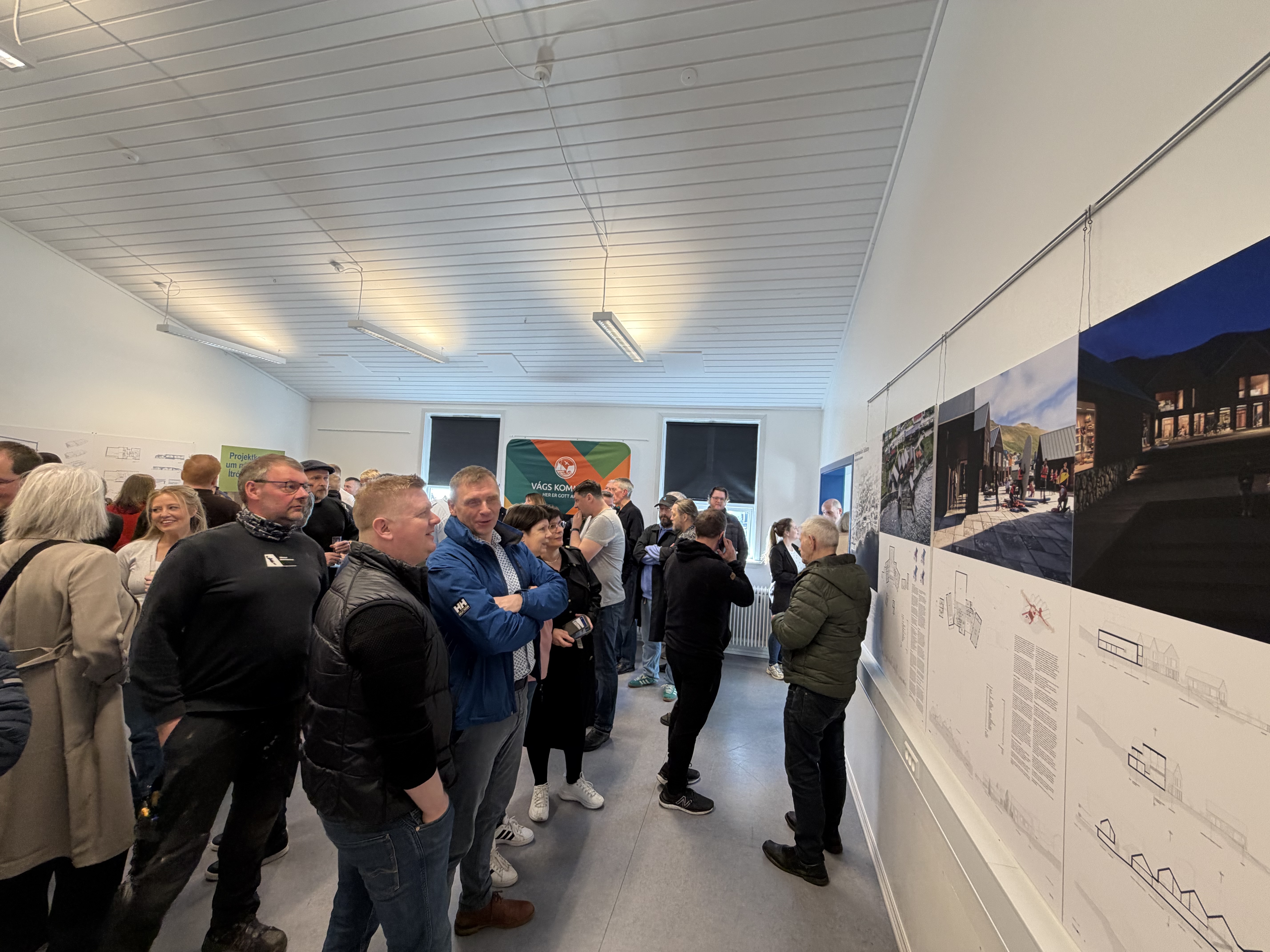Síðani varð boðið inn í bókasavnshølini í Miðlatúni, har høvi var at síggja innkomnu uppskotini.