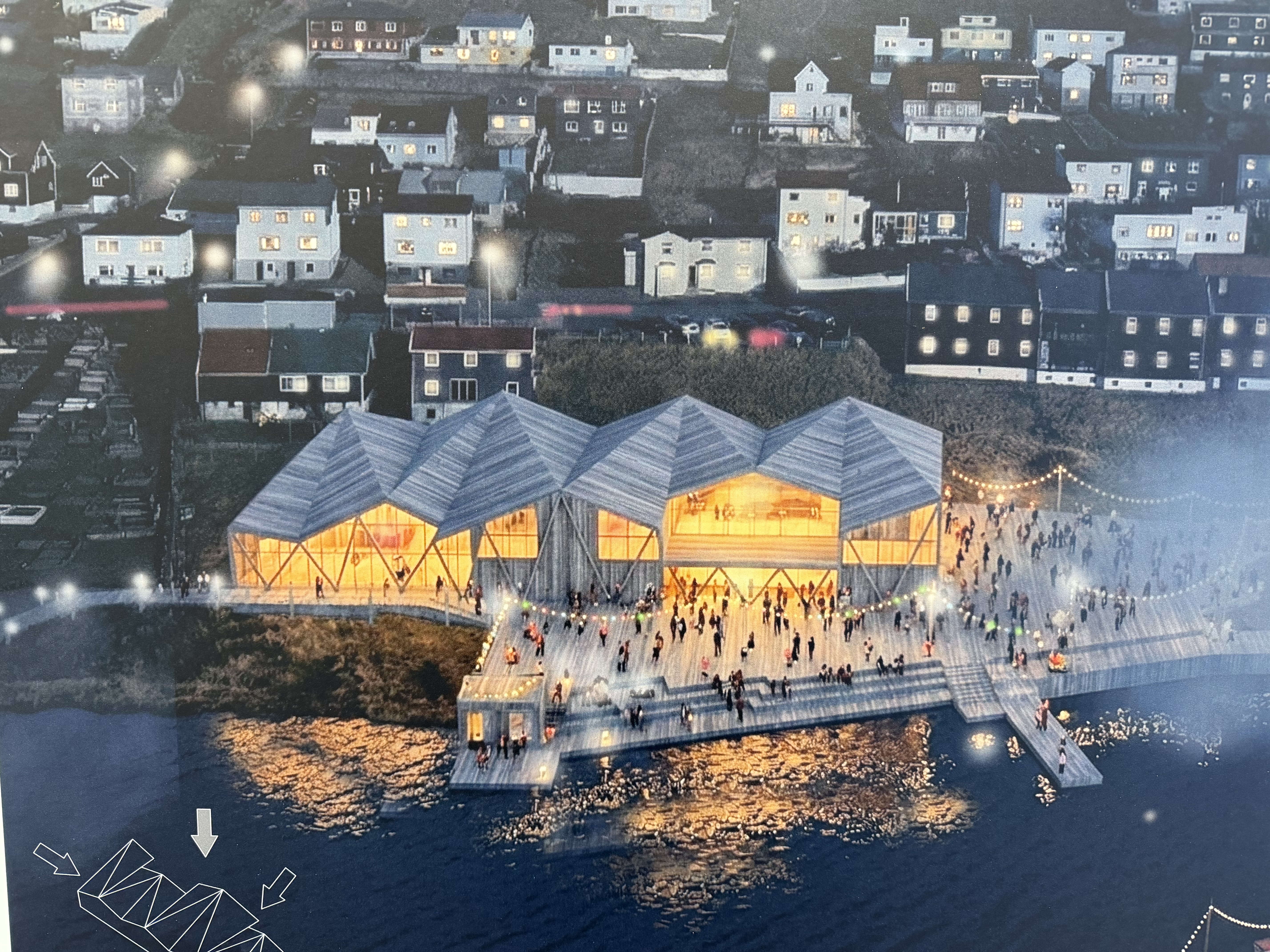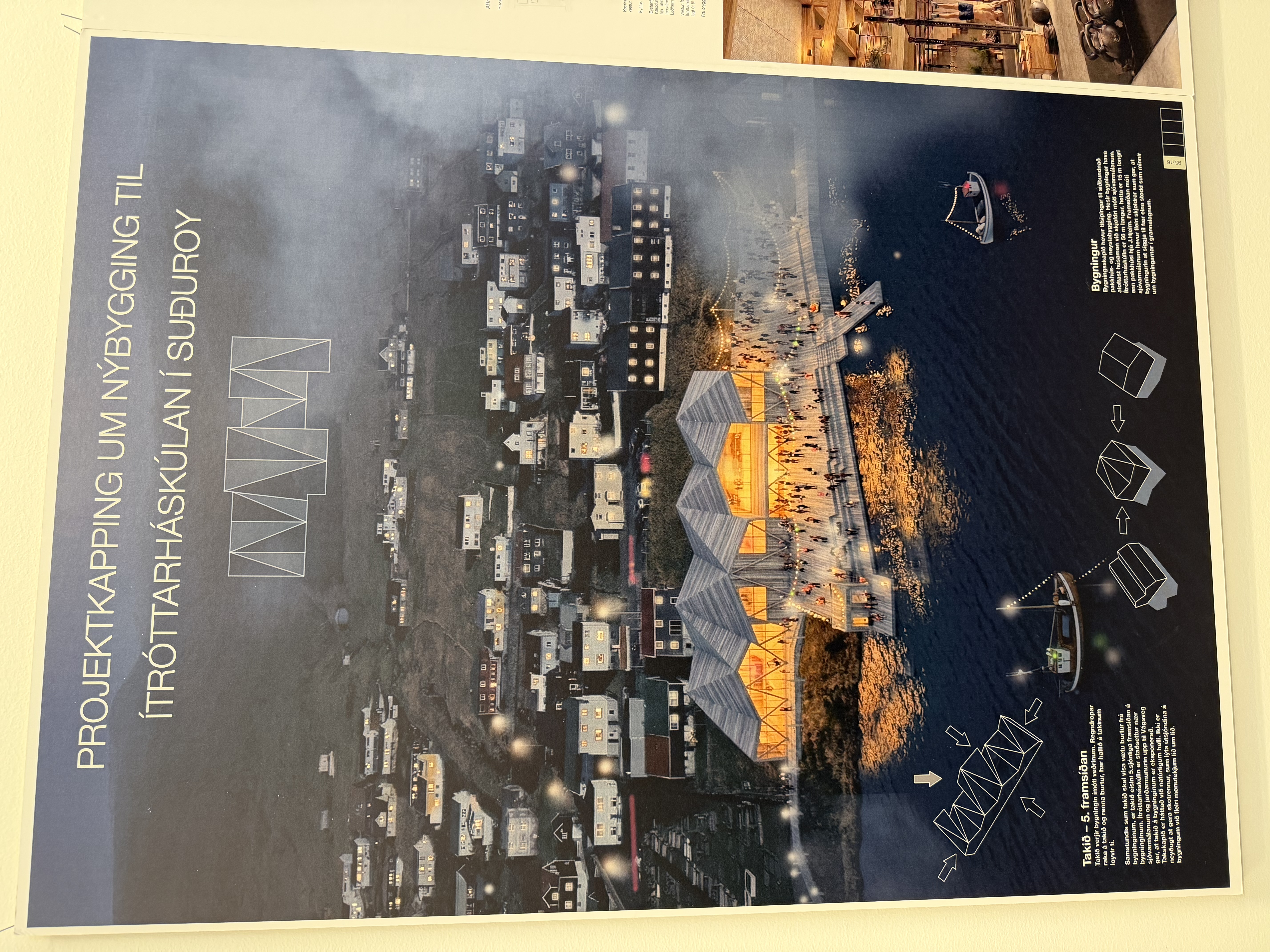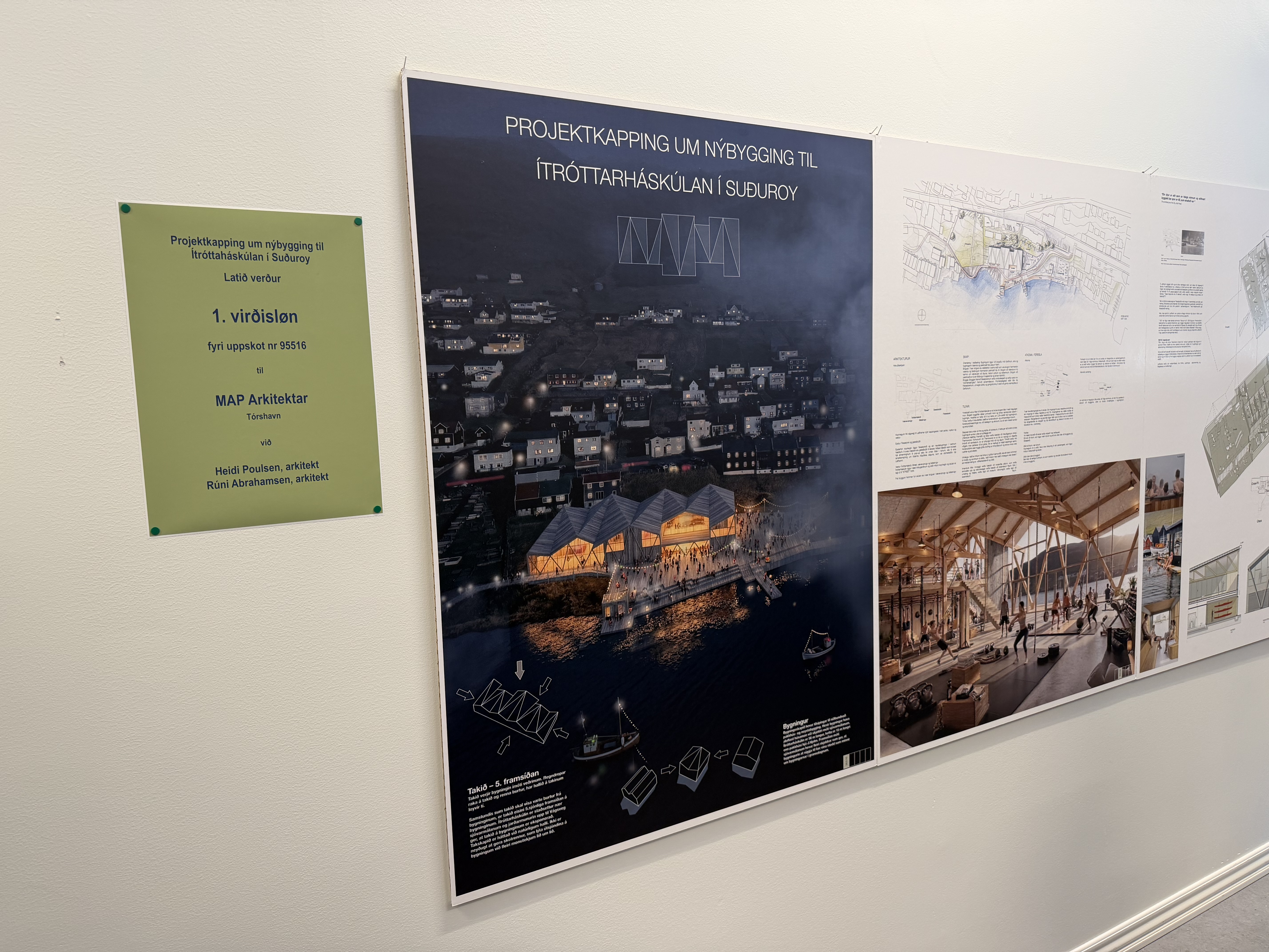 Sera nógv fólk var í gjár komið saman í Miðlatúni í Vági, har úrslitið av arkitektakapping um nýggjan skúlabygning til Ítróttaháskúlan skuldi kunngerast.
