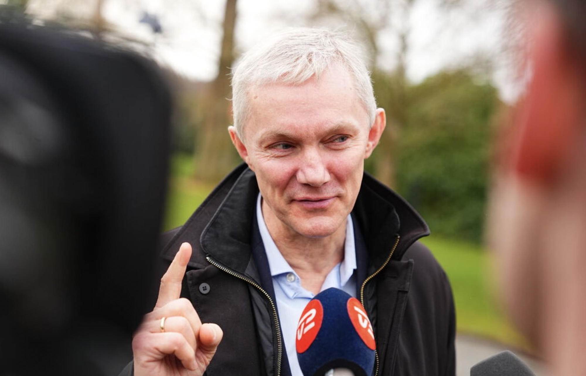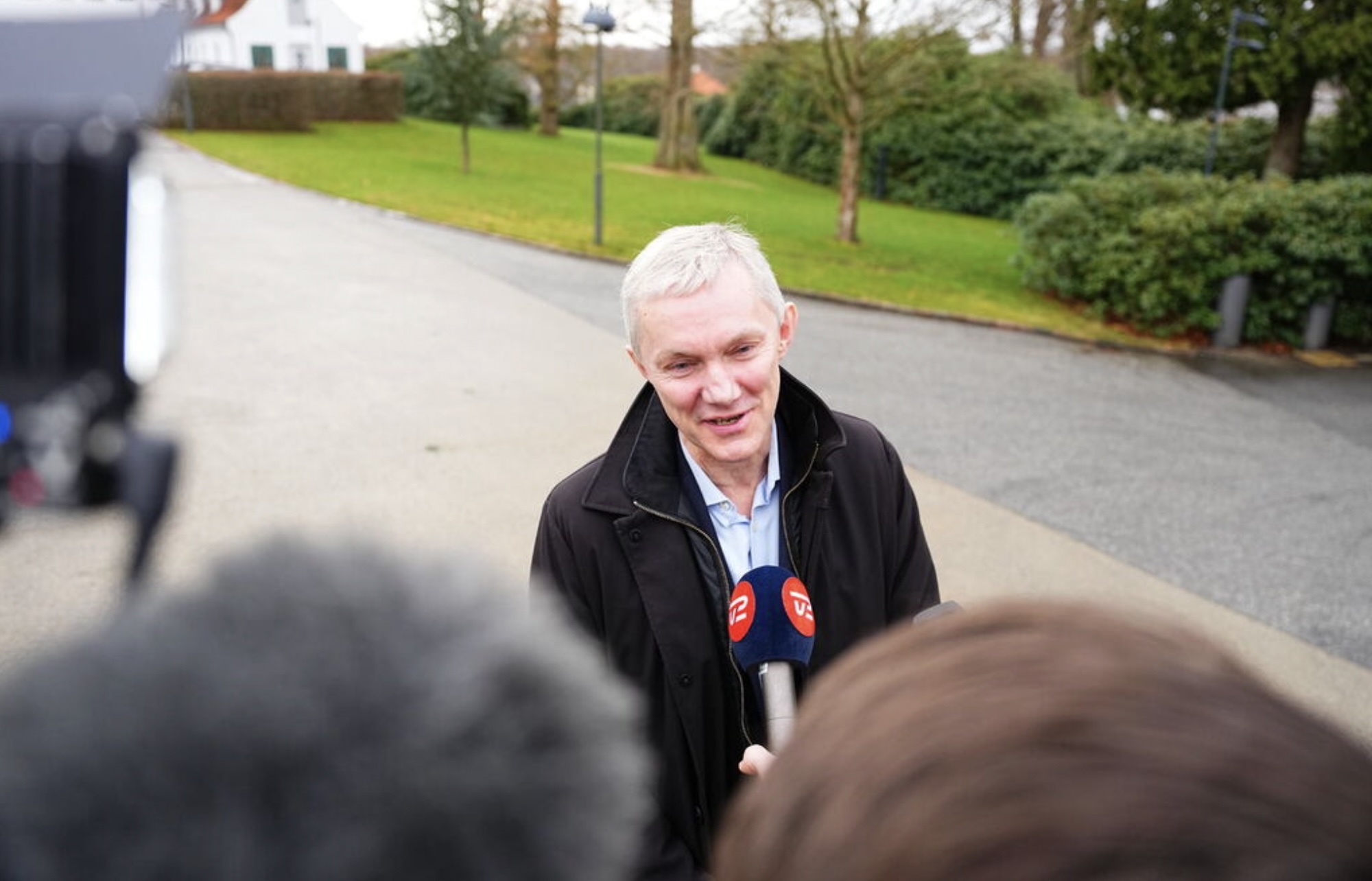 Á veg inn á Marienborg nú beint áðrenn klokkan 9 segði Sjúrður Skaale við tíðindafólk, at hann peikar á Mette Frederiksen.